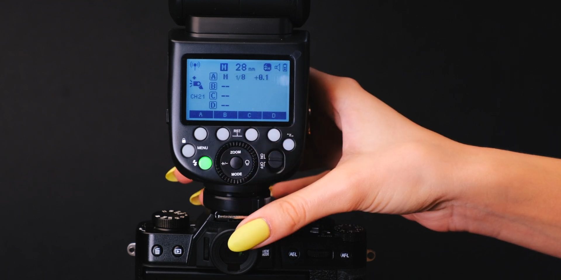И не мешает углу обзора при съемке. Размеры Godox V1N составляют 76 х 197 х 93 мм, в то время как без АКБ 420 грамм. Таким образом, импульсная вспышка V1N станет идеальным выбором для создания образцового контента на студии и во время путешествий.